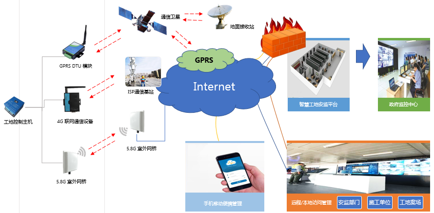 運用業內先進的互聯網、智能安防傳感、嵌入式系統、數據采集存儲、數據融合處理、無線傳感網絡及遠程數據通信技術,集塔機防撞吊鉤可視化系統、塔機吊鉤盲區視頻引導系統、揚塵噪聲污染監測報警系統、升降機安監、塔機黑匣子系統、工地卸料超載實時報警系統管理于一體,有效協助作業現場實現24小時全天候安全監管動態跟蹤,應對作業區塔群碰撞\傾翻\超載\墜物等事件。